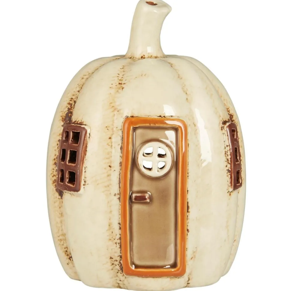 Teelichthaus kürbisförmig, rostfarbiger Türrahmen von IB Laursen aus Dänemark.