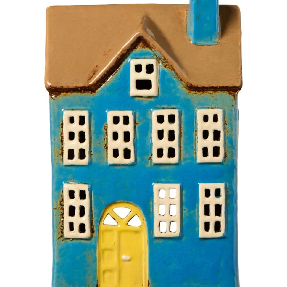 Die Häuser sind vom Hafenviertel Nyhavn in Kopenhagen inspiriert, das für seine vielen farbenfrohen Häuser bekannt ist, jedes Haus mit einer einzigartigen Geschichte und einem leicht skurrilen Ausdruck. Die bezaubernden Keramikhäuser können entweder einzeln stehen – hier und da zwischen Töpfen und Pflanzen – oder zu einer kleinen Nachbarschaft aufgereiht werden. Die Nyhavn-Häuser verbreiten überall, wo sie stehen, eine wunderbare Atmosphäre, und wenn man ein brennendes Teelicht hineinstellt, kann man das gemütliche Licht genießen, das durch die kleinen Fenster scheint.