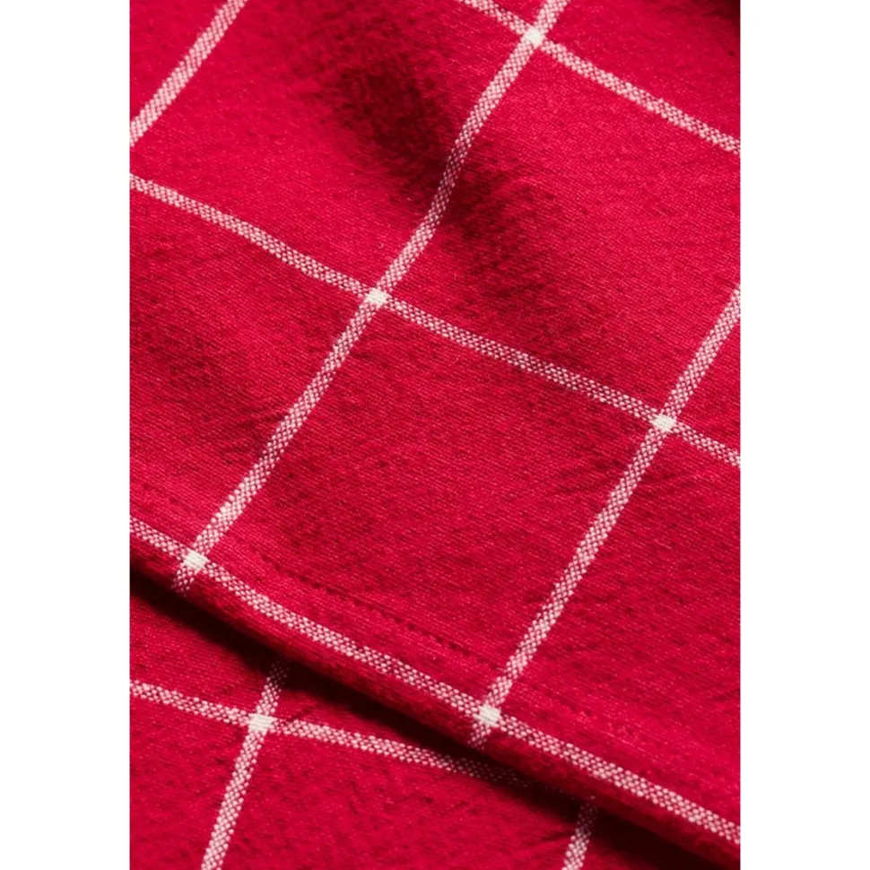 Tischdecke Silja länglich rot mit großen naturfarbigen Karos von IB Laursen aus Dänemark.