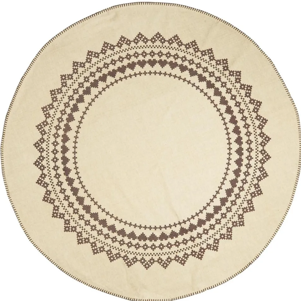 Weihnachtsbaumteppich natur m/dunkelbraunem Muster und Randstickerei von IB Laursen aus Dänemark.