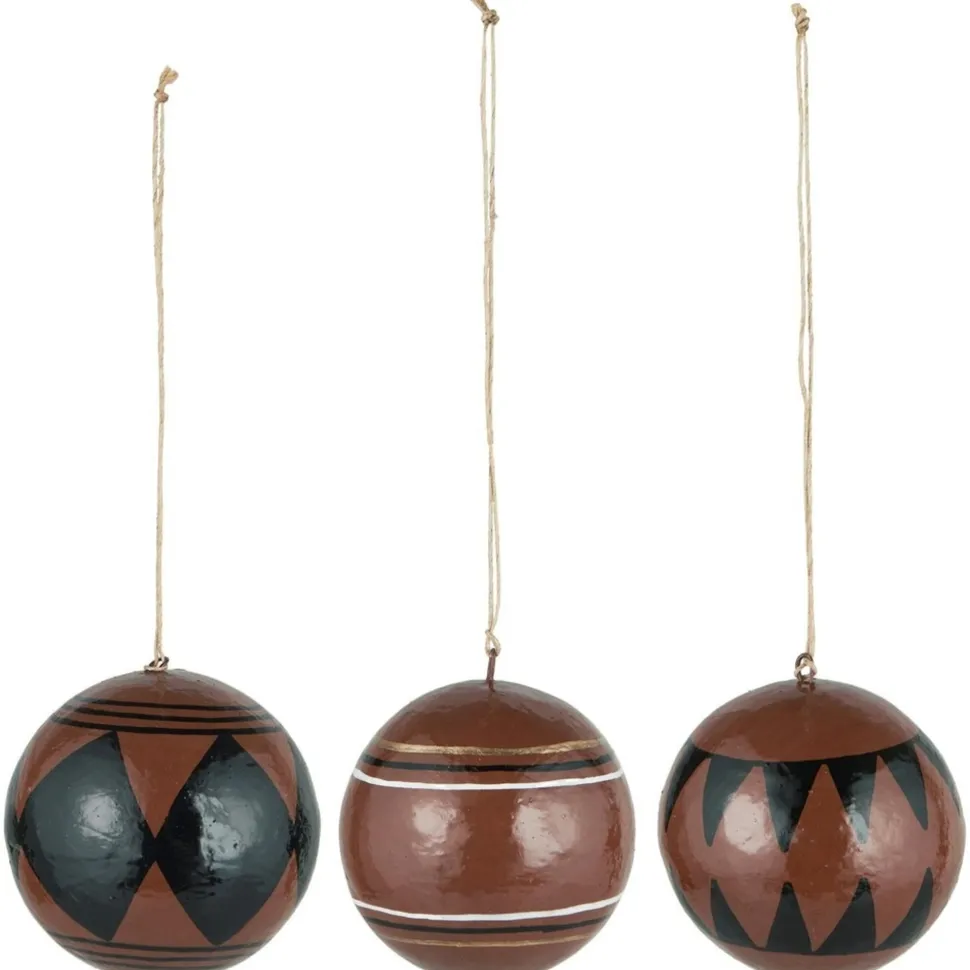Das Ib Laursen Weihnachtskugel 3er-Set aus Pappmaché bringt einen natürlichen und handgefertigten Charme in deine Weihnachtsdekoration. Die aus leichtem Pappmaché gefertigten Christbaumkugeln sind einzigartig und haben eine angenehme, matte Oberfläche, die deinen Baum dezent und zugleich stilvoll schmückt.