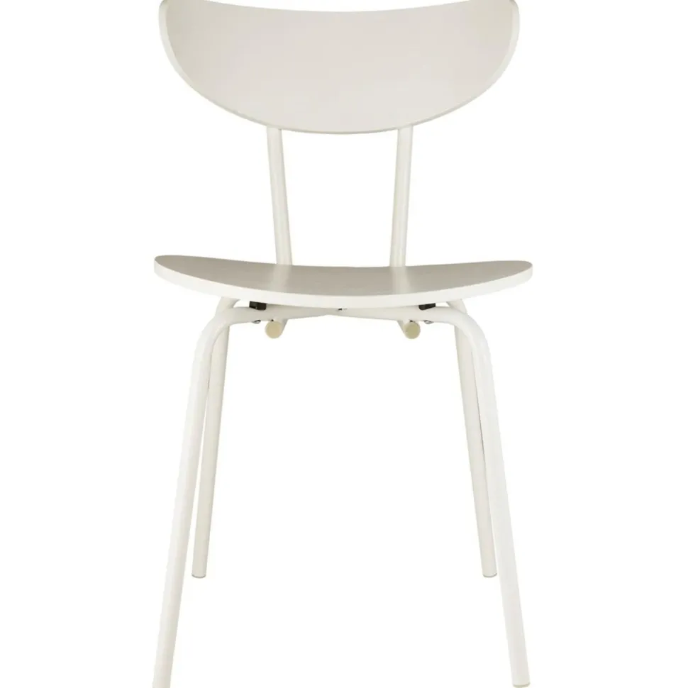 Weißer Stuhl aus Sperrholz, weißes Metallgestell, stapelbar von IB Laursen aus Dänemark.
