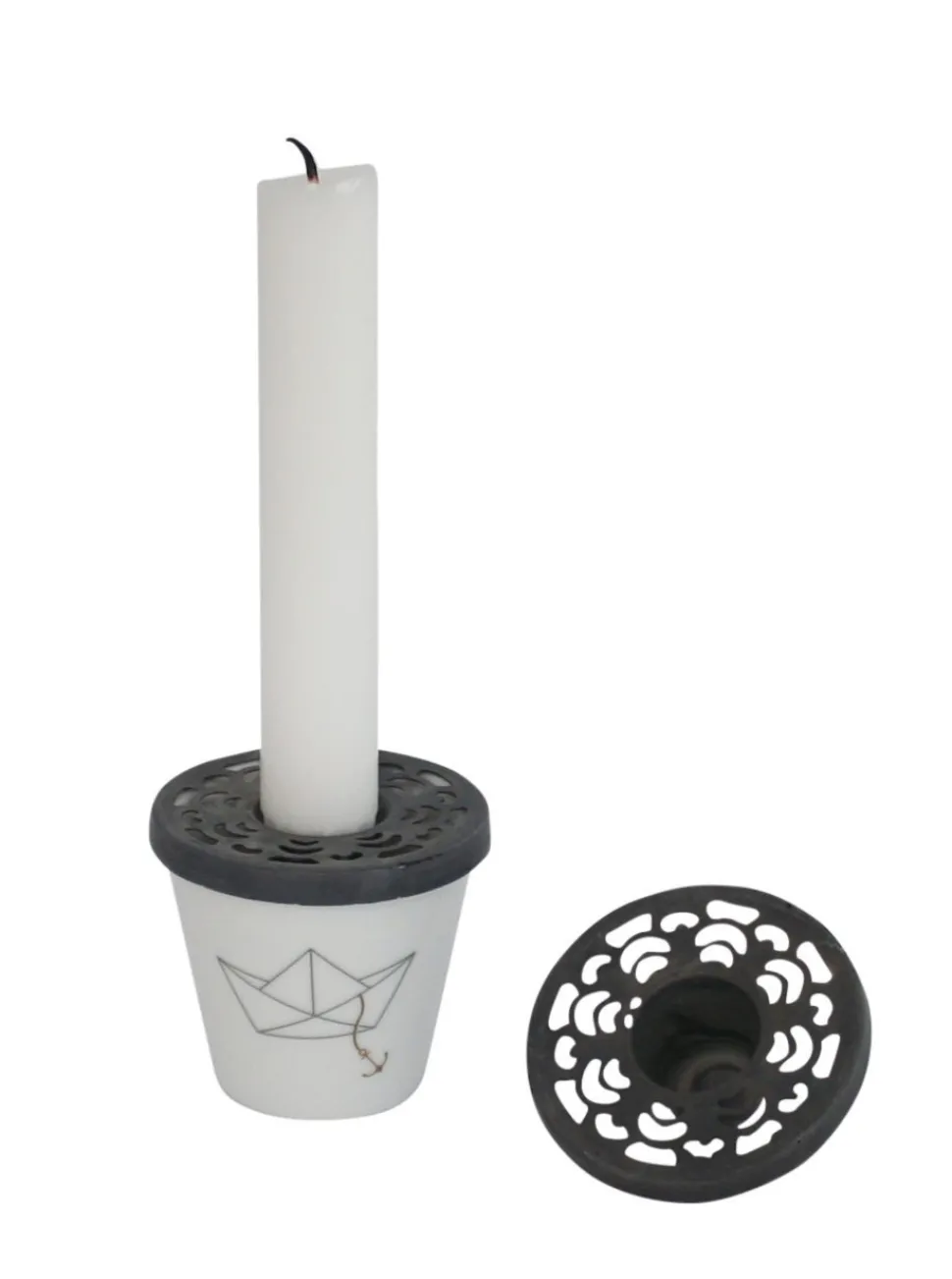 Dieser feine Kerzenhalter Aufsatz aus Zink ist in 3 Größen erhältlich und passt zu den verschiedenen Krasilnikoff Bechern und Tassen.