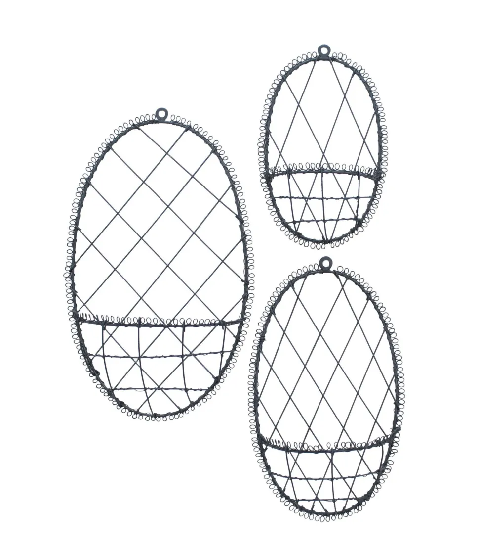 Die ideale Dekoration für Ostern! Lass deiner Kreativität freien Lauf und dekoriere was das Zeug hält mit diesen schönen Fil de fer Körben von Krasilnikoff. Dieses schöne Osterei 3er Set von Krasilnikoff kann an einem Haken aufgehängt und nach Saison dekoriert einen echten Eindruck hinterlassen. Das Set beinhaltet 3 verschiedengroße Körbe: