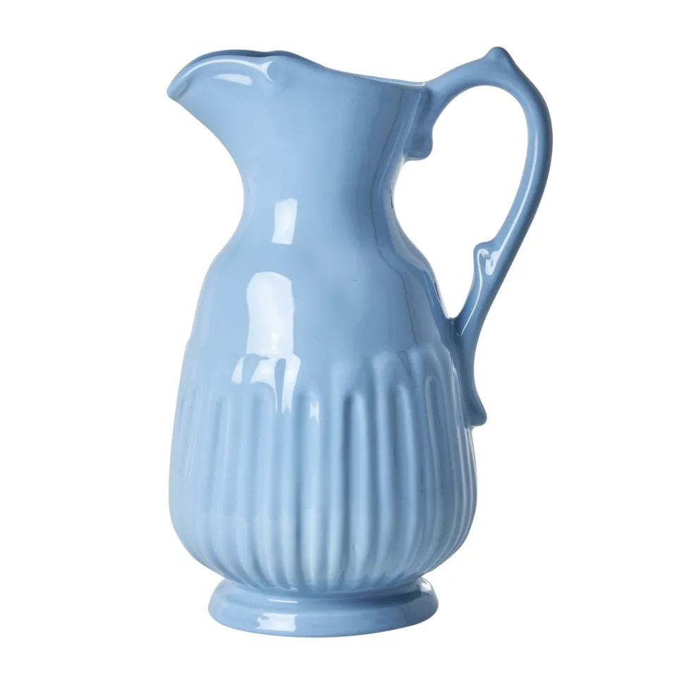 Wunderschöner taubenblauer Keramikkrug mit einzigartiger Form und Muster – für dich, weil du die kleinen Details genauso liebst wie wir. Der Krug ist für fast alles geeignet. Wasser zum Mittagessen, Saft zum Brunch oder ein guter Wein zum Abendessen – oder du arrangierst deine Lblingsblumen darin und verwendest ihn als Vase … einfach herrlich, um jeden Wohnbereich aufzupeppen!