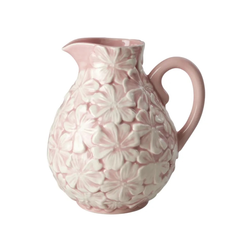 Hübscher pinkfarbener Keramikkrug in einzigartiger Form mit den schönsten Blumendetails – für dich, weil du die die kleinen Details liebst, genau wie wir! Dieser Krug ist ein echter Hingucker in jedem Zuhause. Verwende ihn als Krug auf deinem Esstisch oder als Vase für deine Lieblingsblumen. Der Krug fasst 2,4 L.