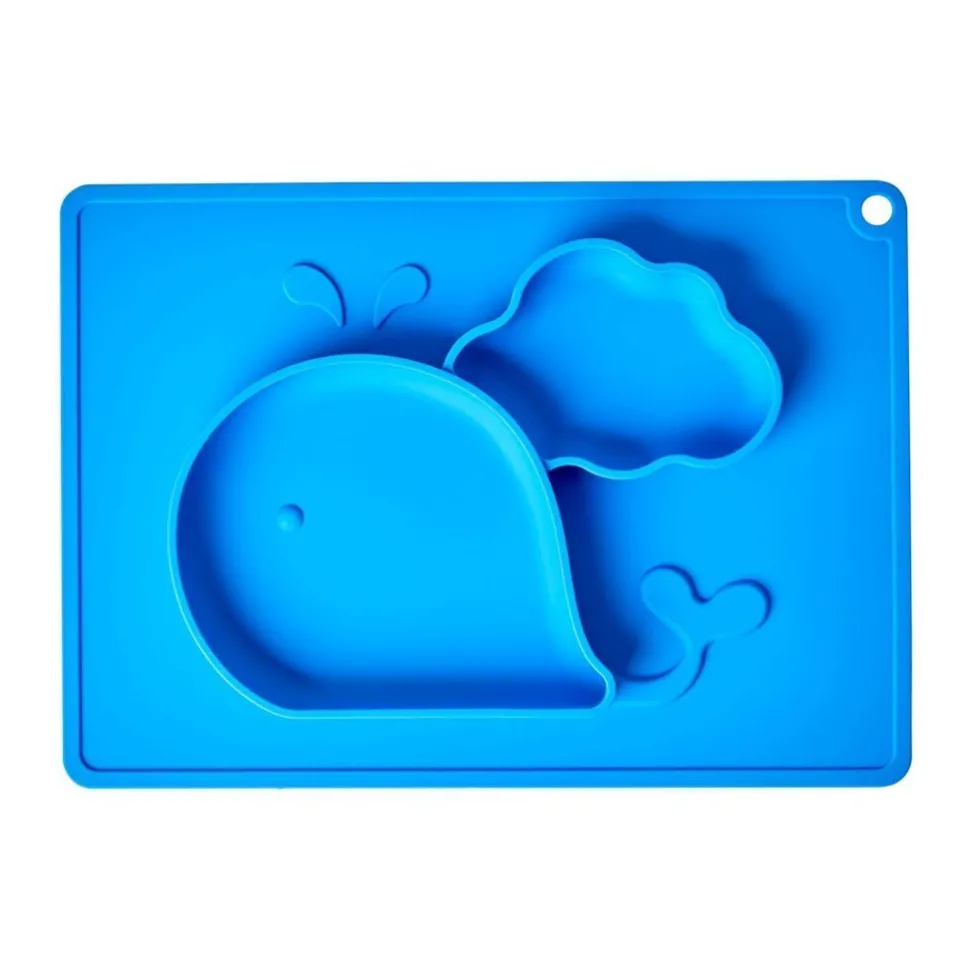 Bringe deinem Kind spielerisch das eigenständige Essen bei mit dieser Silikonmatte und dem integrierten Kinderteller. Diese Silikonmatte von RICE ist die perfekte Ergänzung für ein entspanntes Essen am Tisch. Die Matte ist aus Silikon, was das Verrutschen der Matte verhindert und dafür sorgt, dass alles an seinem Platz bleibt. Außerdem gibt es keinen Teller der einfach auf den Boden fallen kann, denn dieser ist ja in die Matte integriert. Der Teller hat die Form eines niedlichen Wales und ist in zwei Bereiche aufgeteilt. Perfekt also, wenn die Beilage getrennt serviert werden soll. Praktischerweise, kann die Matte sogar in die Mikrowelle.